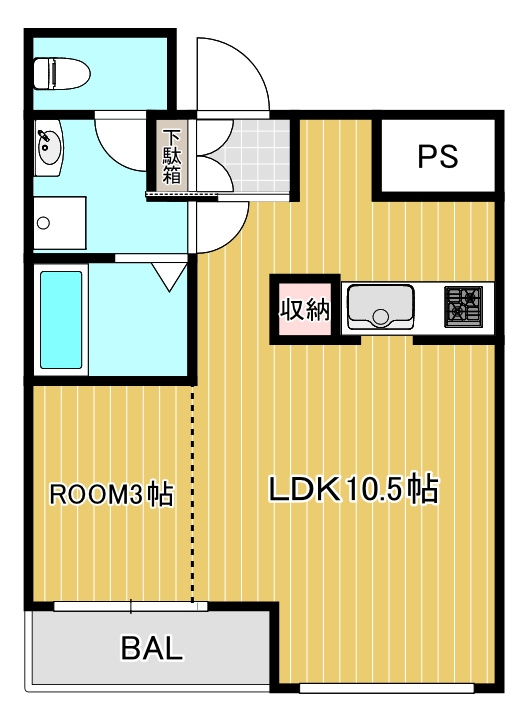 部屋構成 | 洋室 9帖 キッチン 2.5帖 |